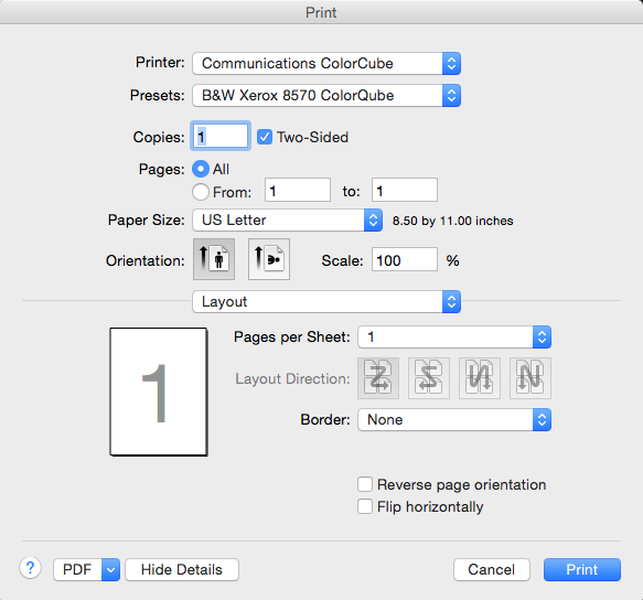 You are now ready to print in black & white.  In the future, when printing to this printer from your computer, select the preset you have created to print in black & white.