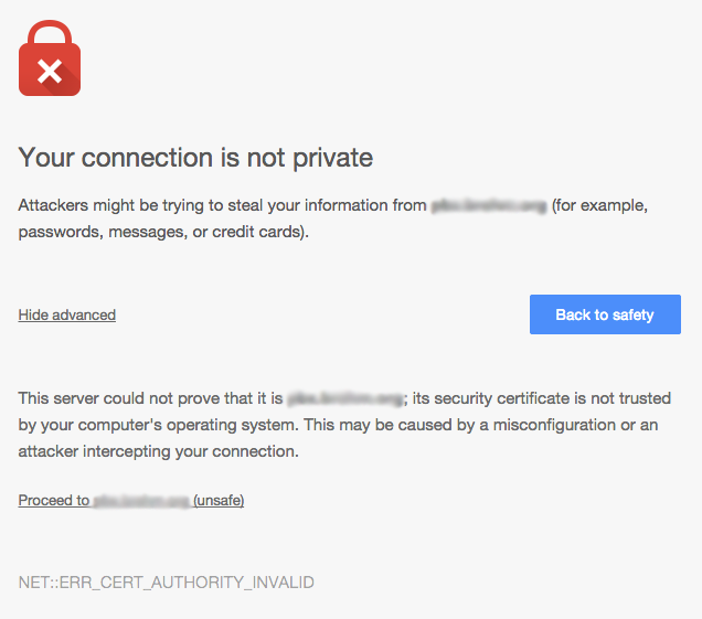 If you think you should not be seeing this warning then check the address bar and make sure it contains the correct address. If it is not the correct address then select the “Back to safety” button. If it is the correct address then and you trust the website, then select the “Advanced” option. An additional text box will appear, Below the text you will see a link saying “Proceed to xxxxxxxxxx (unsafe)“. Click on this link and Chrome will take you to the website.