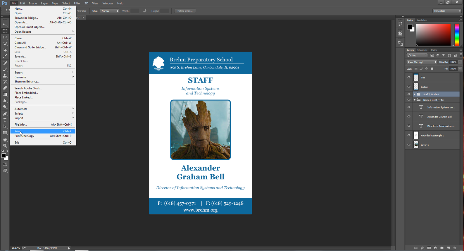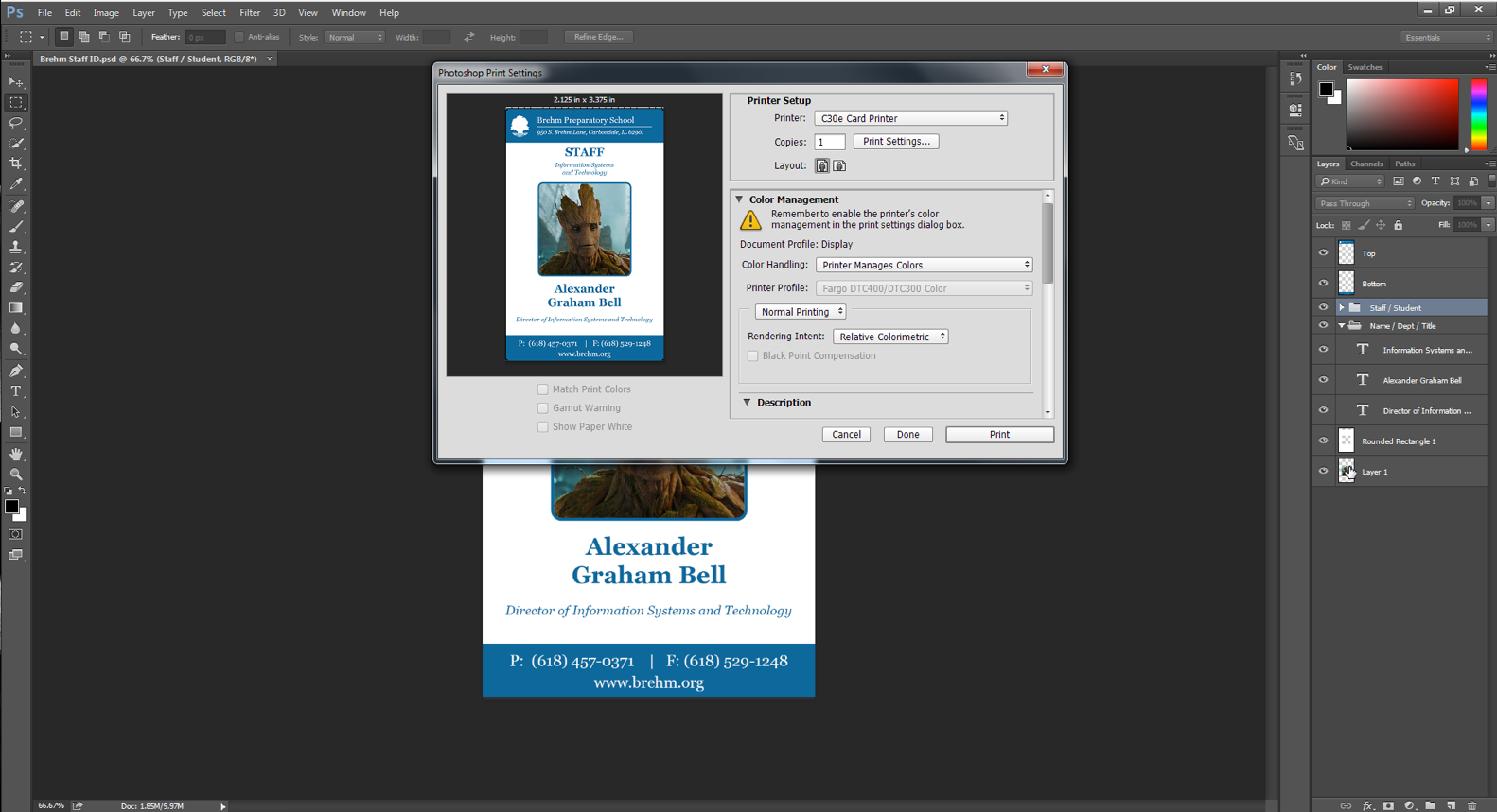** This is after you have created the ID card in Photoshop, using the approved templates **