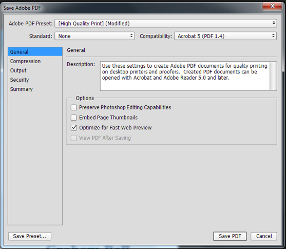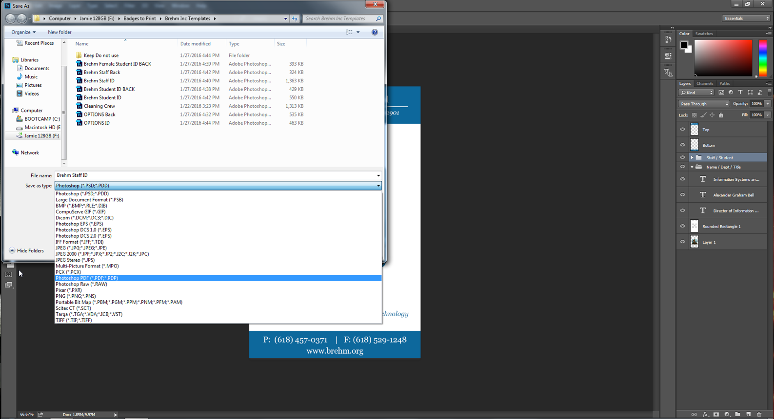 6. Click the “Save as type” drop down and change to Photoshop PDF.