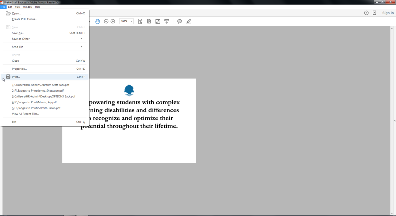 10. Open the appropriate file for the back of the ID, this should open in Adobe Acrobat.